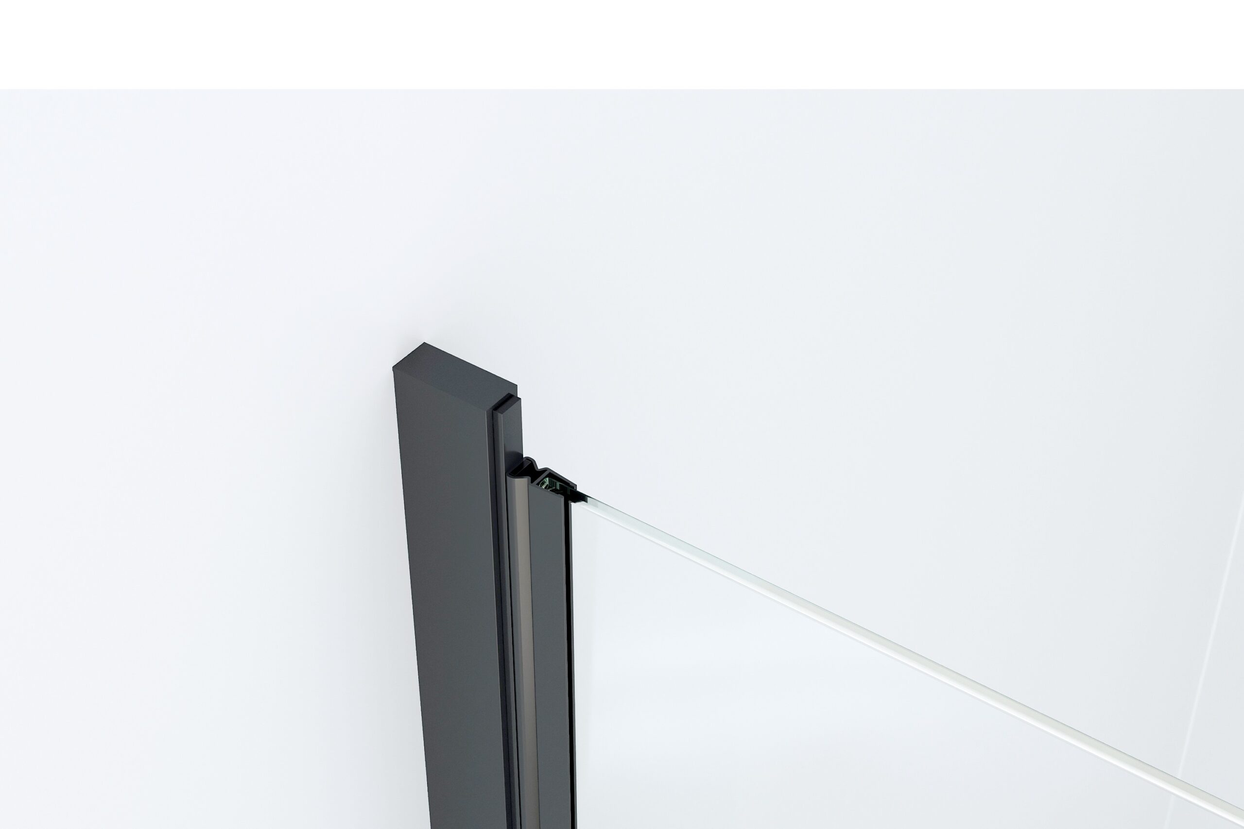 De stevige aluminium profielen in matzwart geven de douchedeur een moderne uitstraling en zorgen voor een duurzame afwerking. Dankzij het liftscharnier opent en sluit de deur soepel en wordt de deur bij het openen enkele millimeters opgetild. Dit voorkomt slijtage aan de onderzijde van de deur en zorgt voor een comfortabele bediening. Deze nisdeur kan zowel op een douchebak als rechtstreeks op de tegelvloer geplaatst worden. De douchedeur wordt bovendien gratis bij u thuis bezorgd.