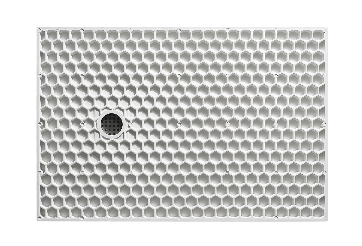 Het oppervlak is voorzien van een antislip laag, waardoor u meer grip heeft tijdens het douchen. Aan de onderzijde bevindt zich een honinggraadstructuur die extra stevigheid geeft en doorbuiging helpt voorkomen.