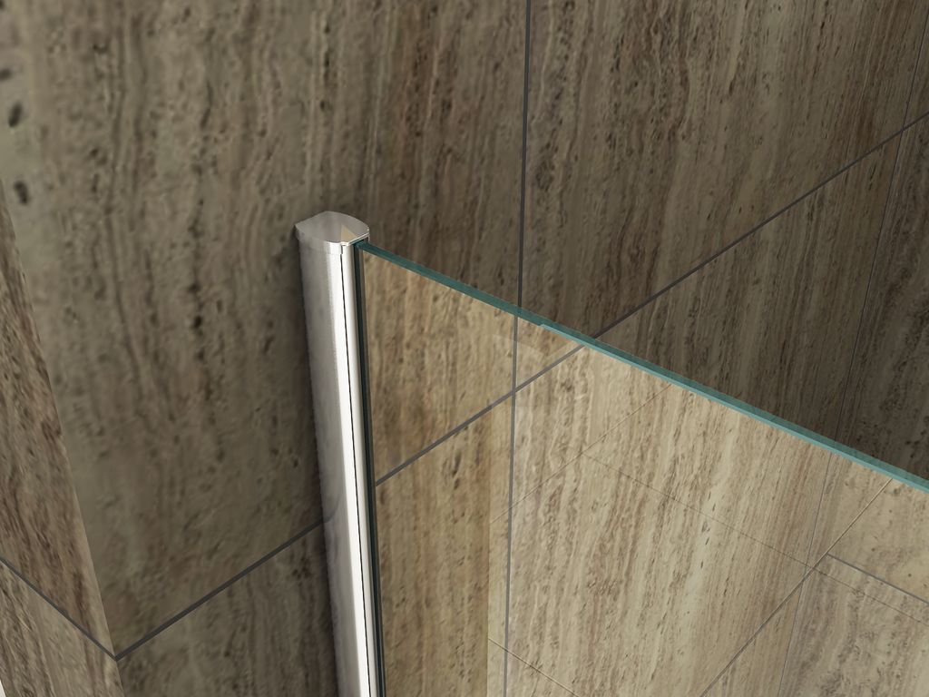 De aluminium profielen zijn slechts 3,2 cm breed voor een minimalistische uitstraling. Met 15 mm stelmogelijkheid is deze wand ook geschikt voor minder rechte muren.